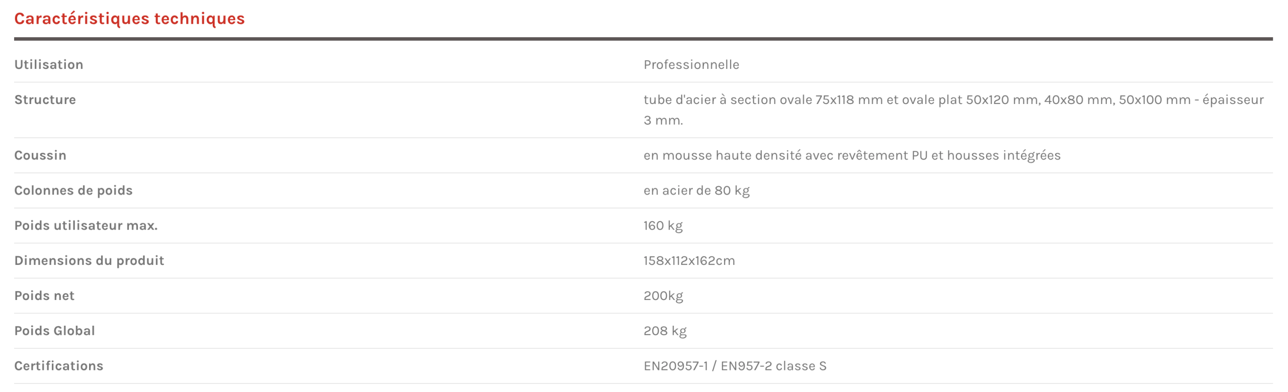 La structure tubulaire en acier de la PLX-7000 est conçue pour durer. Ses sections ovales et plates (75×118 mm, 50×120 mm, 40×80 mm, 50×100 mm) avec une épaisseur de 3 mm assurent une robustesse inégalée. La finition en double couche de poudre époxy, résistante aux rayures, combinée à un traitement par sablage et phosphatation, garantit une protection optimale contre l’usure.