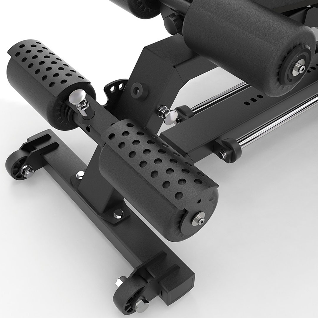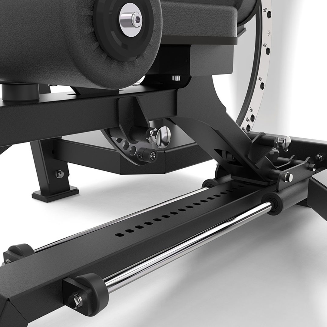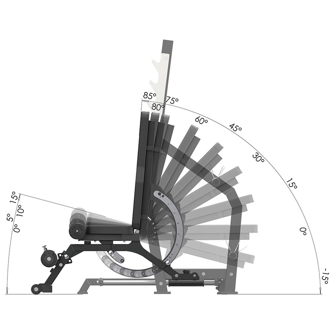 Le WBX-3900 se distingue par son siège à inclinaison réglable sur 4 niveaux (0°-5°-15°-30°) et une profondeur ajustable sur 22 niveaux, offrant un confort et une adaptabilité maximales. Le dossier est également réglable sur 8 niveaux, allant de -15° à 85°, permettant une grande variété d’exercices pour cibler différents groupes musculaires. Les coussins, d’une épaisseur de 60 mm, assurent un confort supérieur pendant l’entraînement.