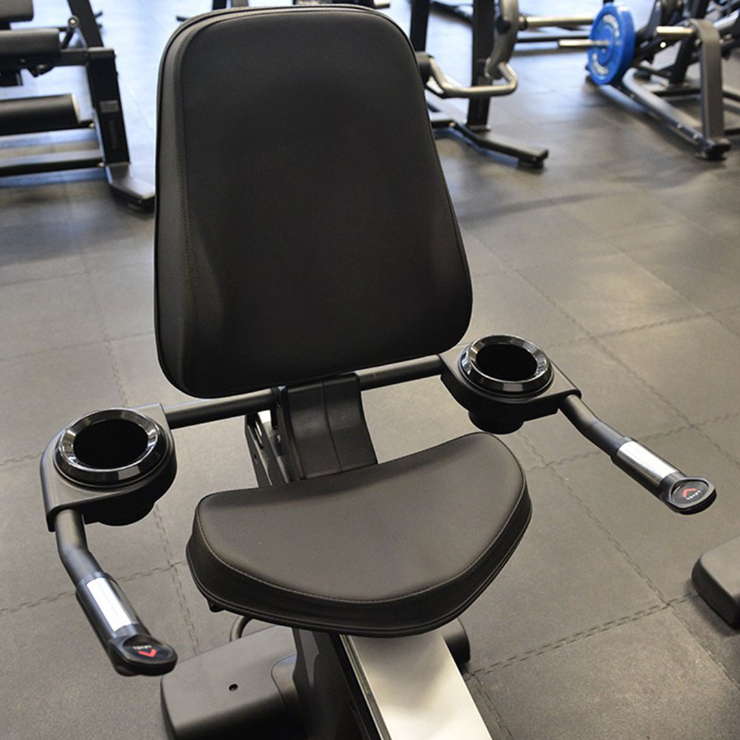 Ce vélo semi-allongé ergomètre auto-alimenté BRX-R9500 TFT possède un système de freinage par induction magnétique.