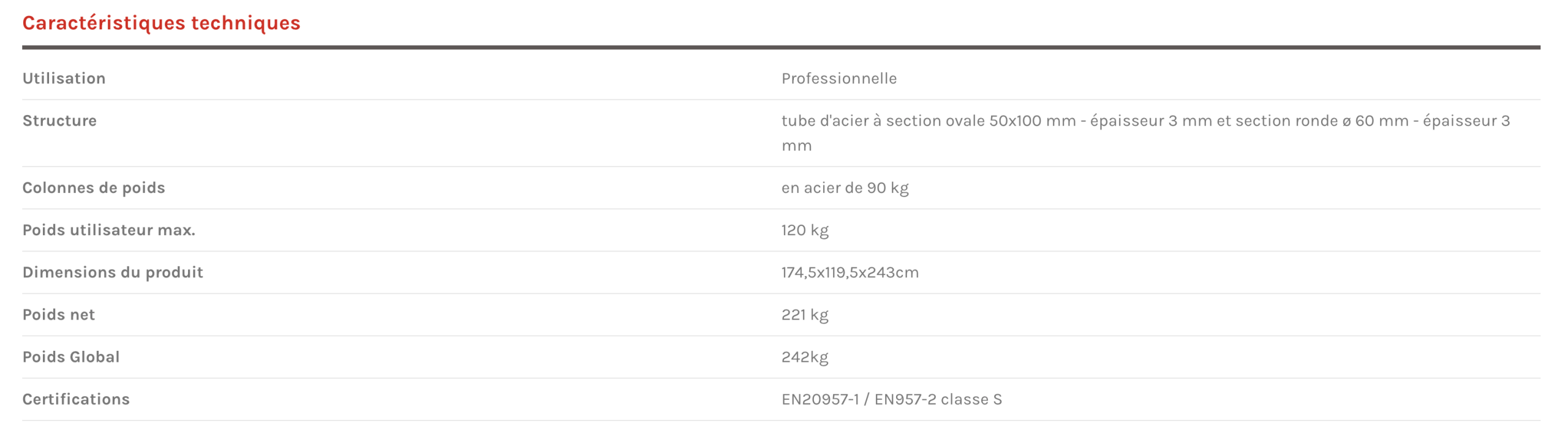 Certifications : EN20957-1 / EN957-2 classe S